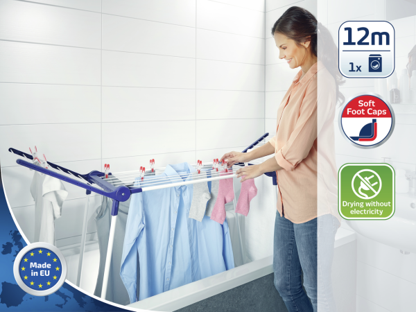 מתקן ייבוש כביסה Pegasus 120 Solid Compact יציב מאוד מתאים להצבה באמבטיה, גובה כנפיים מתקפלות 93 סמ, 12 מטר לתלייה,…