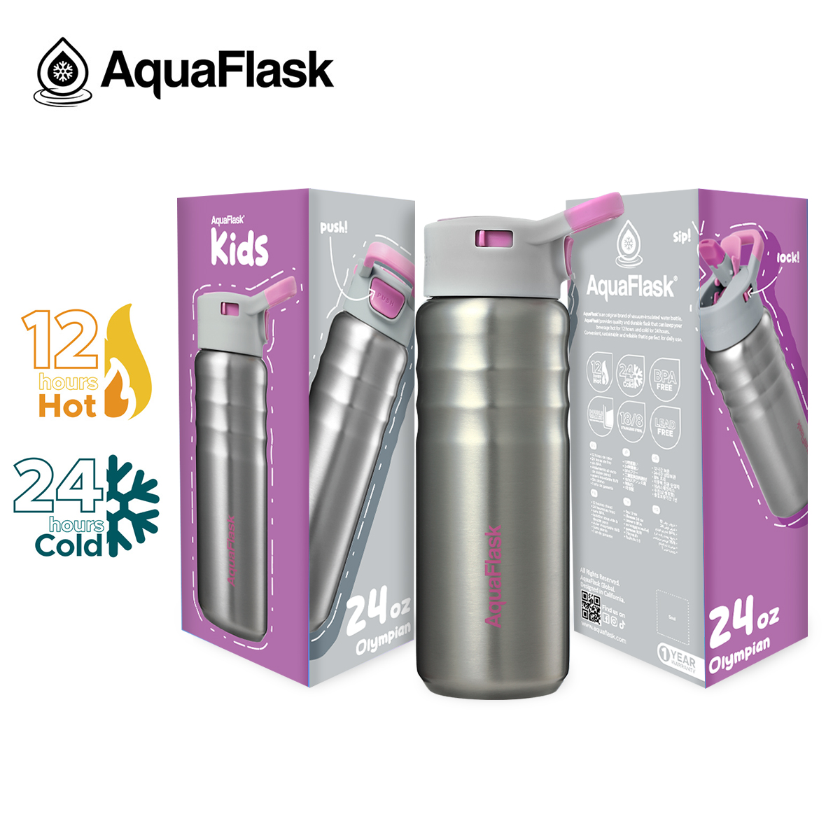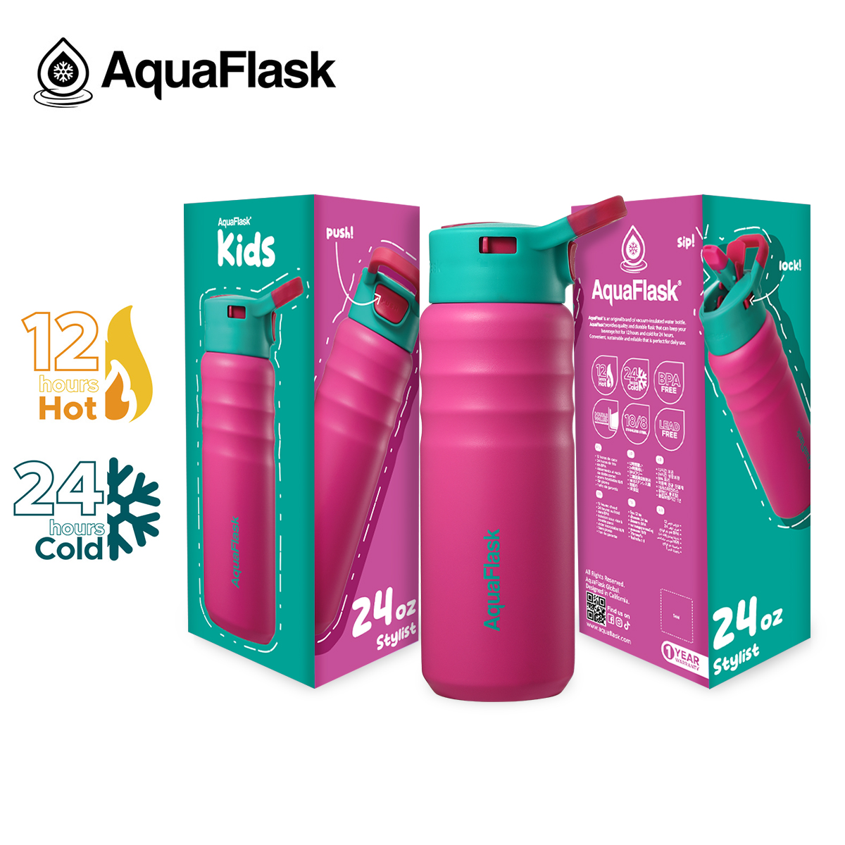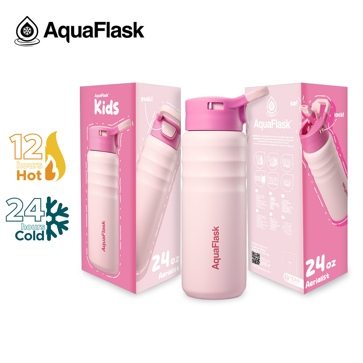 בקבוק השתייה מסדרת Kids Straw Sip של AquaFlask נועד לשימוש יומיומי של ילדים ונוער. הבקבוק כולל קש שתייה הנפתח בלחיצת כפתור, מתג נעילה ייעודי למניעת נזילות, והוא עשוי מחומרים בטוחים לשתייה, כך שניתן לשאת אותו בתיק לבית הספר, לחוגים או לטיולים בצורה בטוחה וללא חשש לנזילות.
