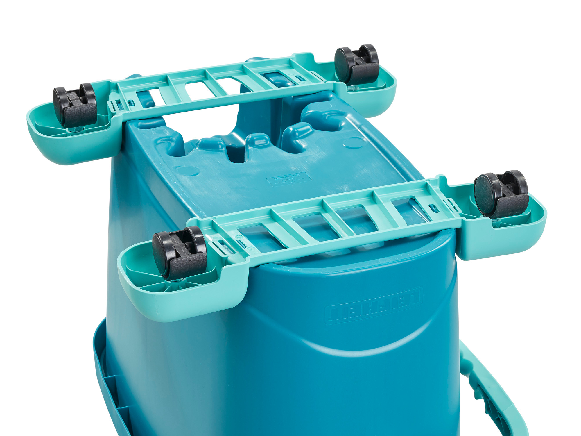 - עגלת ערכות ניקיון 4 גלגלים מסתובבים 360° לניידות מקסימלית ונוחה בכל הבית.